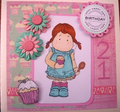 I managed to make my first christmas card yesterday using the Magnolia 'Standing Fall Tilda'. I coloured her using my ProMarkers. I love this stamp as it is so versitile and can be used for any occassion.The papers are from Basic Greys 'Wassail Collection' and the cardstock is pearlescent. The sentiment is a stamp by Hero Arts.